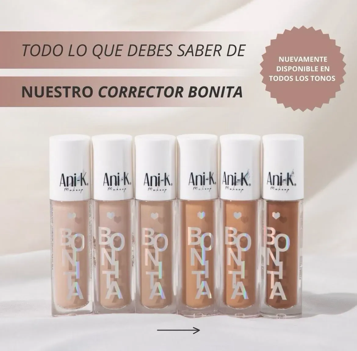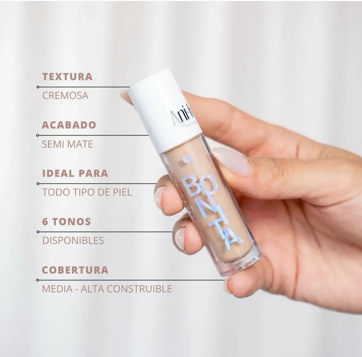 Logra una piel impecable con el corrector de ojeras Bonita! Tiene una textura cremosa e hidratante, ideal para todo tipo de piel. Posee una cobertura media-alta construible pero sin sensación pesada.