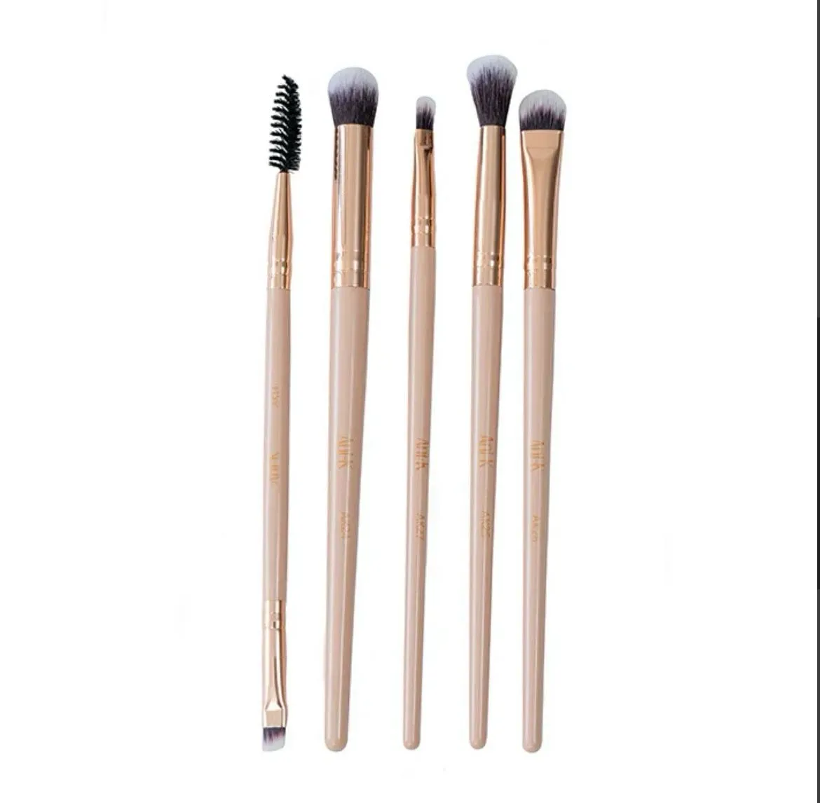 Este set de ojos tiene los pinceles ideales para hacer un maquillaje de ojos completo. Contiene un pincel de cejas, dos pinceles para difuminar, una lengua de gato y un pincel para labios o delineados. Su material es muy suave y es 100% sintético
